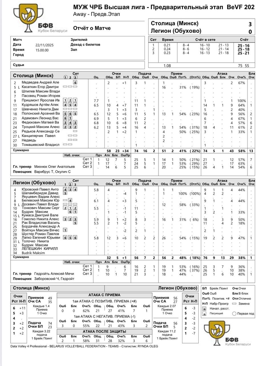 Столица провела очень уверенный матч, доминировав в атаке и на блоке. В очередной раз ярче всех у минчан смотрелся доигровщик Максим Троцкий – 13 очков.
