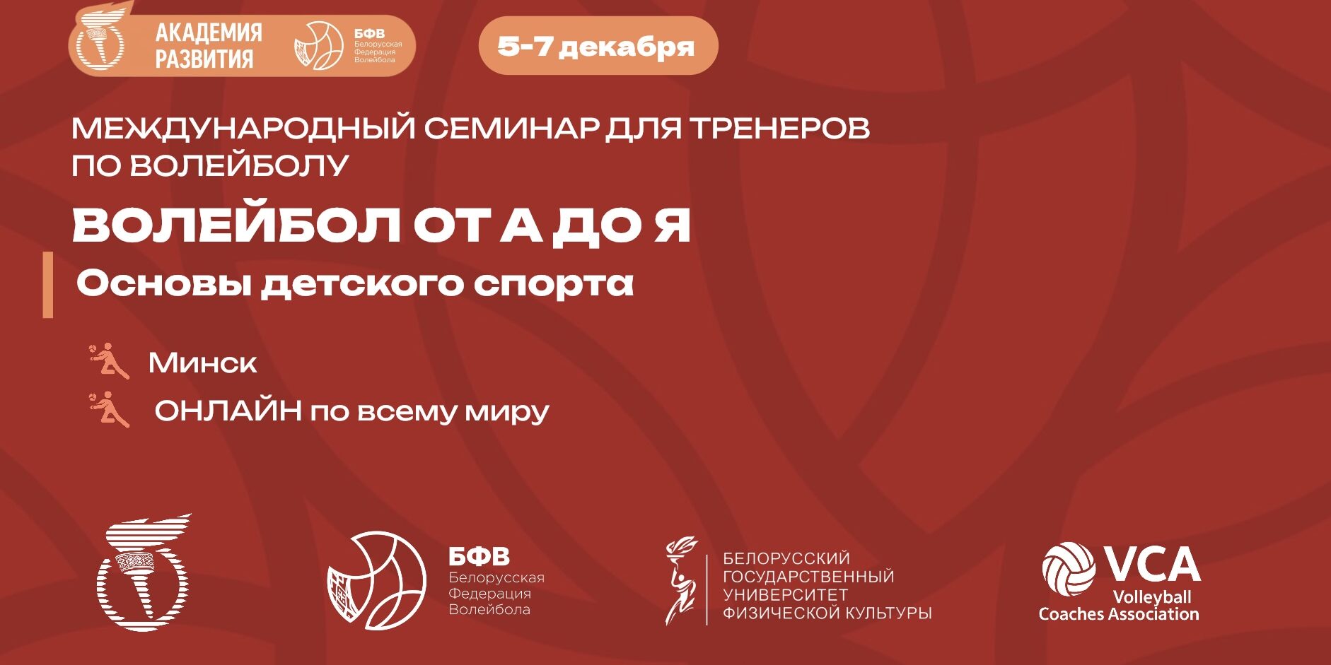 С 5 по 7 декабря Минск станет центром волейбольной жизни СНГ. В эти дни пройдёт масштабный образовательный семинар «Волейбол от А до Я. Основы детского спорта», который объединит сотни тренеров, специалистов и энтузиастов — как офлайн, так и онлайн из любой точки мира.