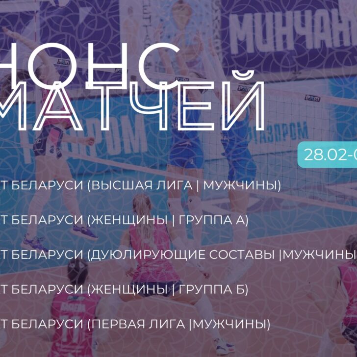 14 февраля (среда) Чемпионат Беларуси/ Группа А/ Женщины 17:00 Минчанка-2 (Минск) – Коммунальник-Могилев (Могилев) Ул. Молодежная, 1 д.Большой Тростинец г. Минск 17:30 Коммунальник-ГрГУ (Гродно) – Прибужье (Брест) Ул. Захарова,32 г. Гродно 17:00 Жемчужина Полесья (Мозырь) – РГУОР-2008 (Минск) Ул. Рыжкова, 90 г. Мозырь Чемпионат Беларуси/ Дублирующие составы/ Мужчины 12:00 РГУОР-2009 (Минск) – РГУОР-2007 (Минск) РГУОР ул. Филимонова, 51Б г.…